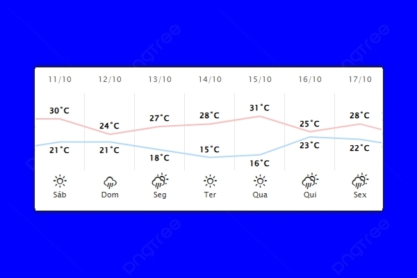 O destaque para este dia fica por conta da elevação significativa das temperaturas máximas.