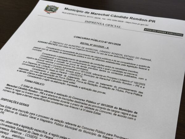 Destaque – Abertas as inscrições para Concurso Público na prefeitura de Marechal Cândido Rondon
