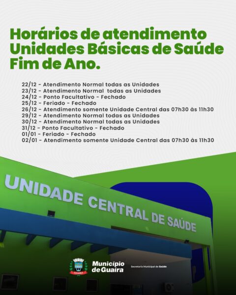 Saúde – Município de Guaíra divulga horários de atendimento das Unidades Básicas de Saúde para o fim de ano
