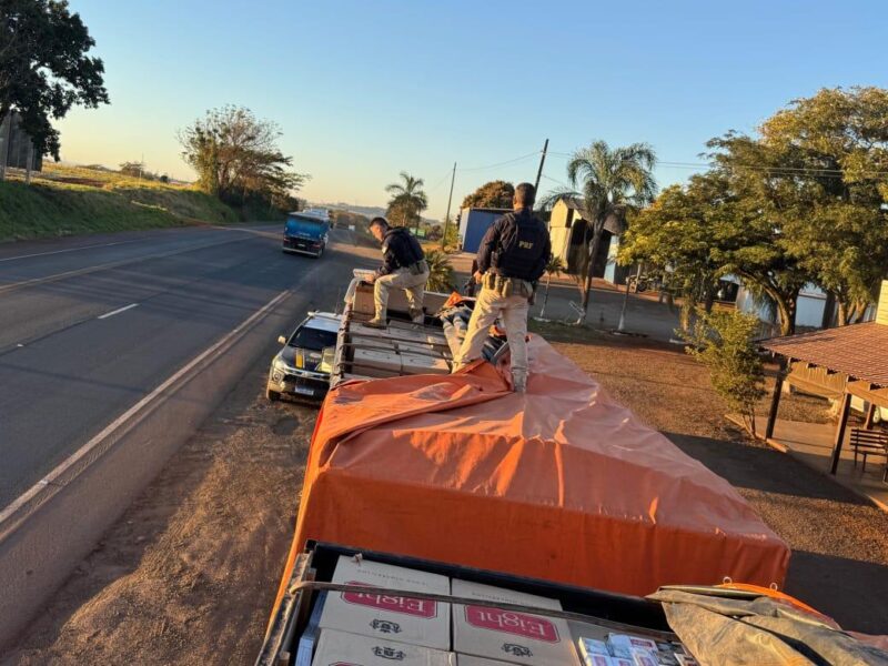 Inicialmente, ele afirmou transportar milho a granel, apresentando nota fiscal da mercadoria. No entanto, após a retirada da lona de cobertura, os policiais constataram que o carregamento era, na verdade, composto por cerca de 1.200 caixas de cigarros, totalizando aproximadamente 600 mil maços, todos de origem estrangeira e sem documentação fiscal.