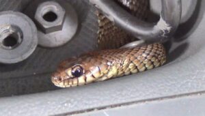 Polícia Ambiental levou 5h para encontrar animal escondido entre peças do veículo.