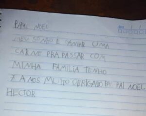 RS – ‘Meu sonho é ganhar uma carne para passar com a minha família’, escreve menino em carta ao Papai Noel