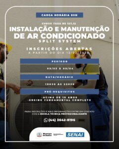 Oportunidade – Município de Guaíra abre inscrições para curso de Instalação e Manutenção de Ar-Condicionado Split System