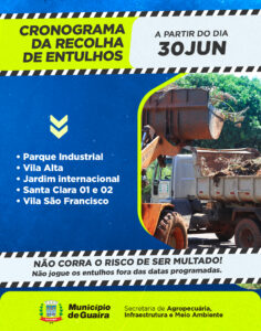 Guaíra – Município realiza limpeza urbana com mais uma etapa do rodízio de coleta de entulhos nos bairros
