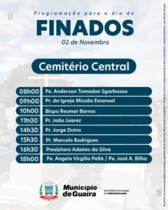 O secretário de Administração, Fabiano Raddatz, enfatiza que as reformas ou benfeitorias nos túmulos dos cemitérios, tanto central quanto rural, poderão ser realizadas até sexta-feira, 29 de outubro.