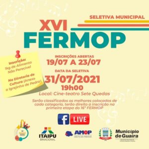 O FERMOP é um festival de interpretação que abrange as categorias/estilos de música Gospel, Infantojuvenil, Popular e Sertaneja.