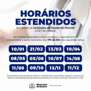 Os horários estendidos visam melhorar o atendimento a comunidade e serão realizados das 17h às 20h