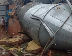 SC – Vendaval e chuva derrubam silo com 20 toneladas de ração, provocam alagamentos e deixam moradores ilhados