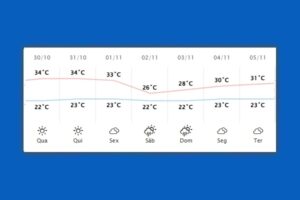 Predomínio de sol e as temperaturas ganham um pouco mais de elevação.