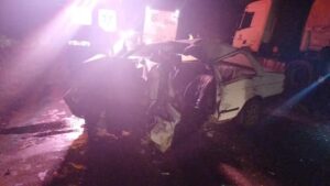 Carro em que a vítima estava ficou com a frente totalmente destruída.