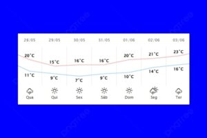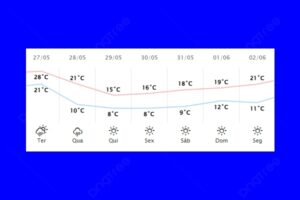 Com a passagem da frente fria, as temperaturas entrarão em acentuado declínio ao longo do dia, devido à intrusão de uma massa de ar de origem polar.