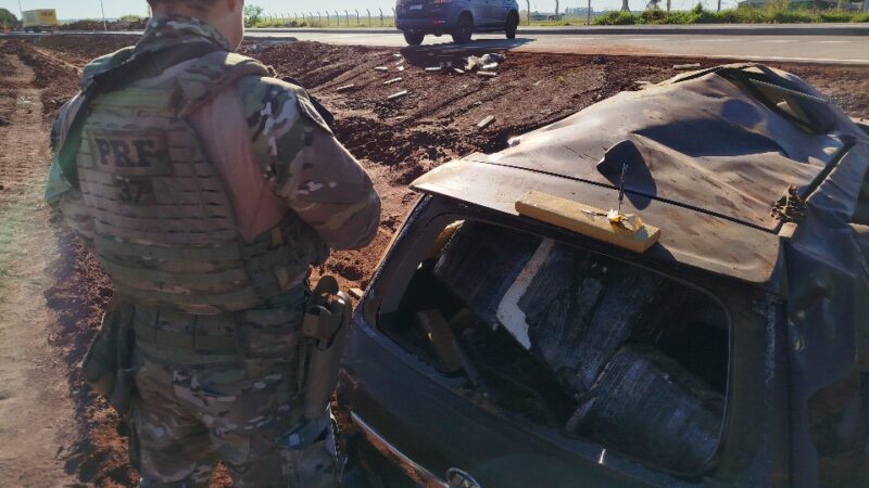 Um homem foi preso na manhã de quinta-feira (14), depois de capotar a caminhonete em que transportava 488 quilos de maconha. O veículo, com placas adulteradas, trafegava próximo a Goioerê quando o motorista desobedeceu ordem de parada e fugiu em alta velocidade.