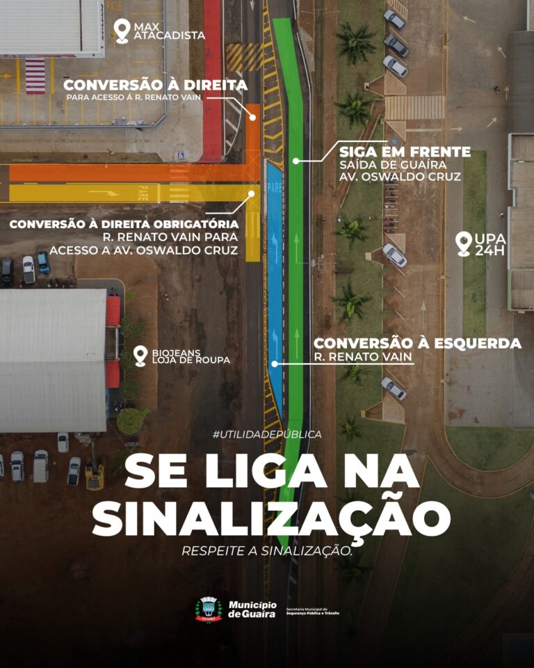 O Município de Guaíra, por meio da Secretaria Municipal de Segurança Pública e Trânsito, implantou recentemente o chamado “Trevo Alemão” em frente ao Max Atacadista, na Avenida Osvaldo Cruz. A obra foi desenvolvida a partir de uma proposta apresentada pelo próprio empreendimento, com o objetivo de organizar o fluxo de veículos e garantir mais segurança no acesso à Rua Renato Vain.