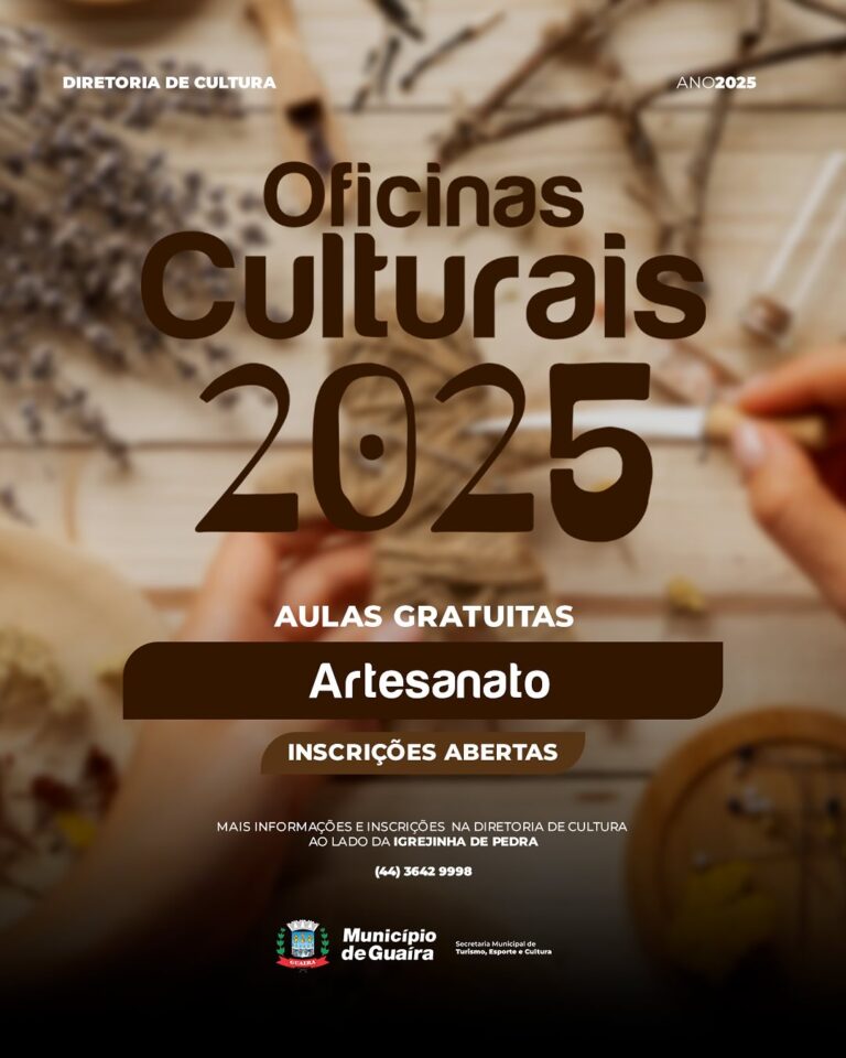 O Município de Guaíra, por meio da Diretoria de Cultura da Secretaria Municipal de Turismo, Esporte e Cultura, está com inscrições abertas para as Oficinas Culturais 2025.