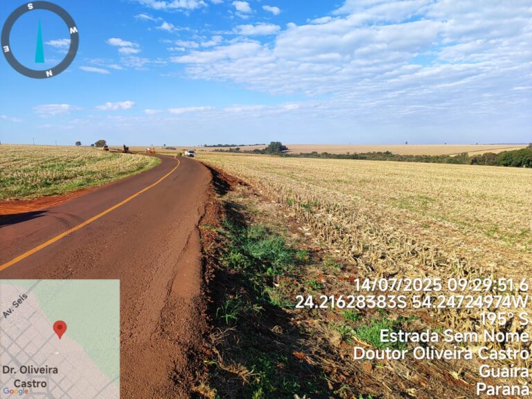O Município de Guaíra, por meio da Diretoria de Estradas de Rodagem da SEMAIM – Secretaria Municipal de Agropecuária, Infraestrutura e Meio Ambiente , executa uma obra de melhoria na curva próxima ao Capivari dos Sanches, na rodovia que liga a sede do Município ao Distrito de Dr. Oliveira Castro.