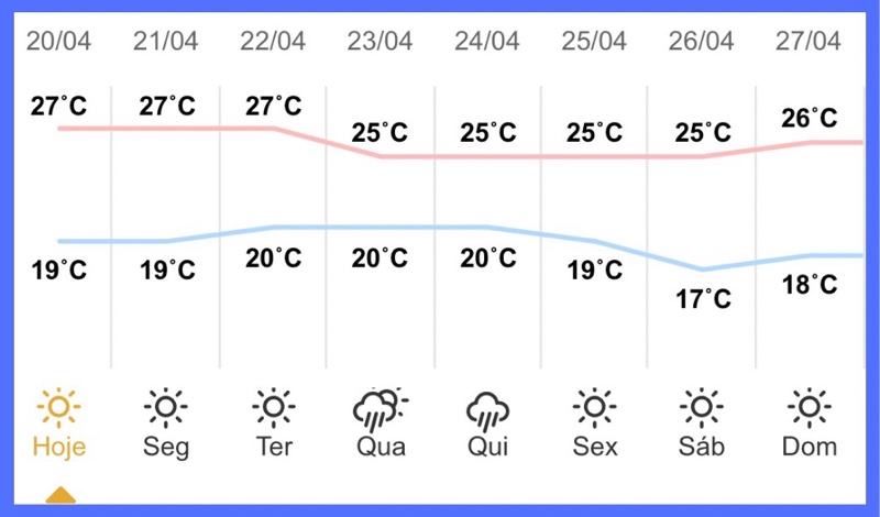 O sol predomina entre poucas nuvens, com temperaturas em elevação.