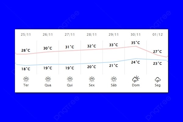 No período da tarde, espera-se que as máximas se aproximem dos 25 °C em todo o estado, com cerca de 28 °C e 30 °C nas faixas oeste e norte.