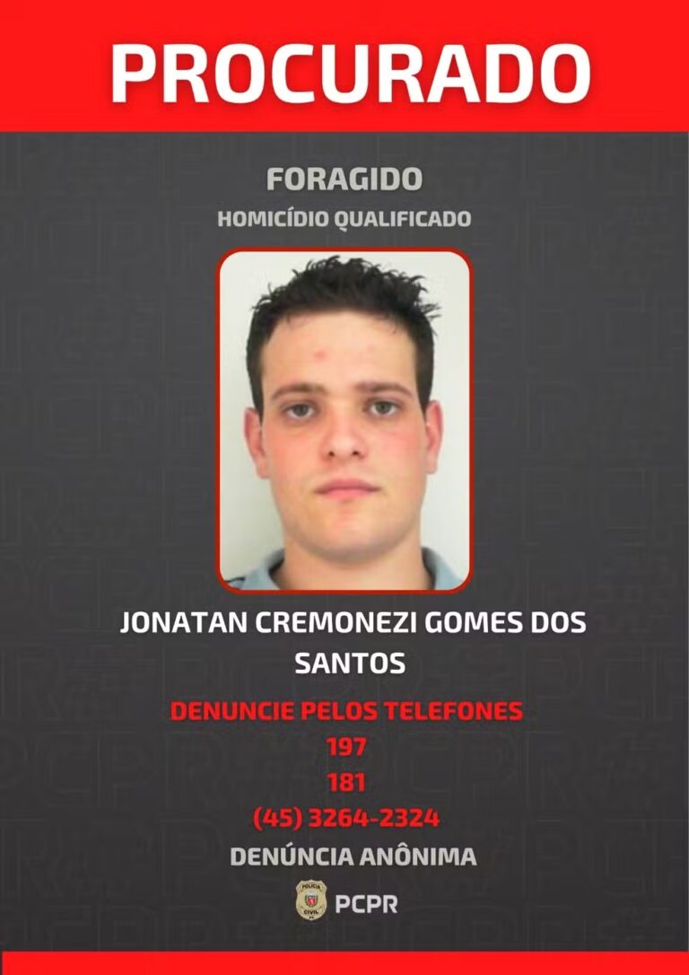 Jonatan Cremonezi Gomes dos Santos, foragido há mais de um ano suspeito de envolvimento na morte do adolescente Luís Fernando Chiarentin, de 14 anos, se apresentou à Polícia Civil do Paraná na sexta-feira (30).