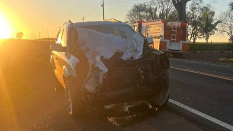 Uma médica do Samu ficou ferida após o carro que conduzia bater em boi solto na PR-281, em São Jorge D’Oeste, na manhã de quarta-feira (27). Ela seguia para Dois Vizinhos, onde assumiria um plantão, quando o acidente aconteceu.