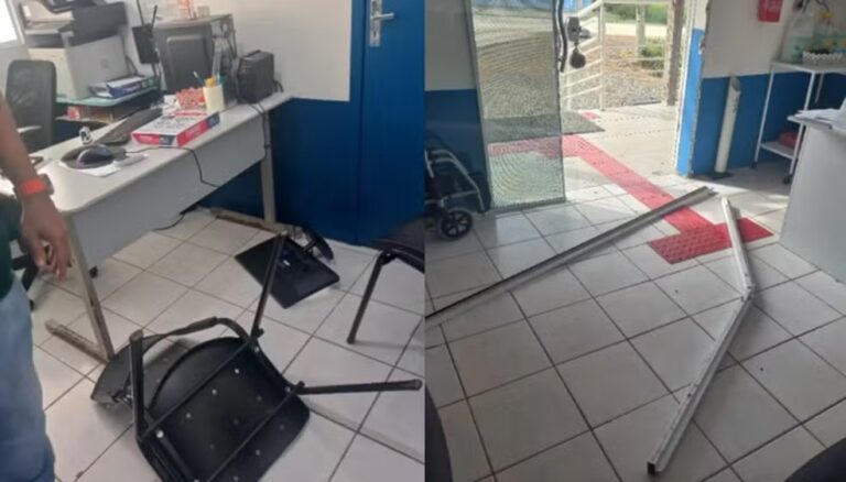 Inicialmente, a mulher agrediu um médico e uma funcionária da limpeza. Em seguida, danificou equipamentos e a estrutura da entrada do posto.
