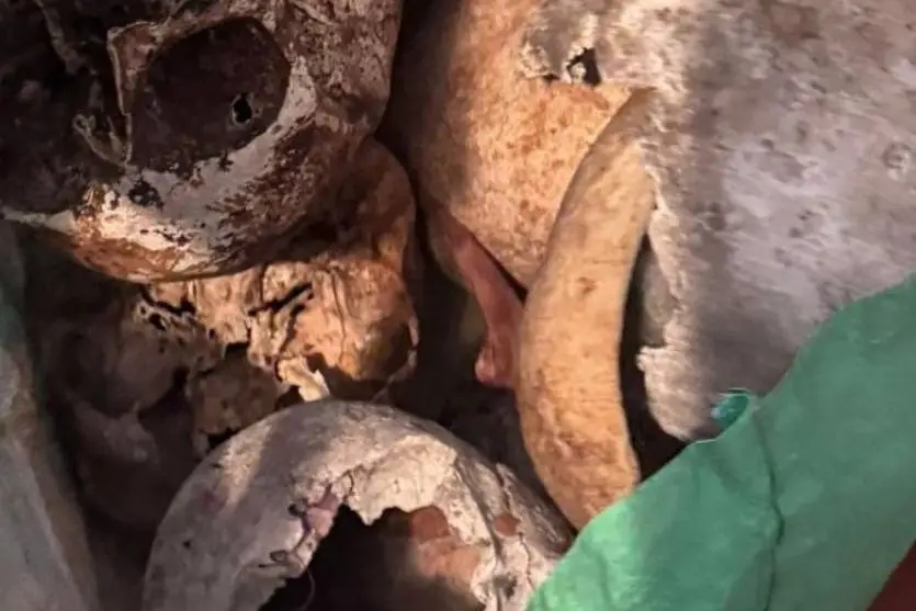 Segundo a PM, há suspeita de que os restos mortais tenham sido furtados de cemitérios da capital. No local, os agentes também localizaram fotografias em preto e branco e uma caixa lacrada.
