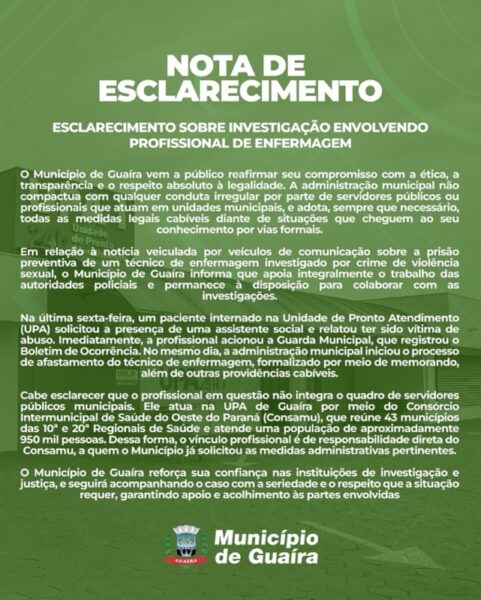 Guaíra – Município emite nota oficial sobre investigação envolvendo profissional de enfermagem