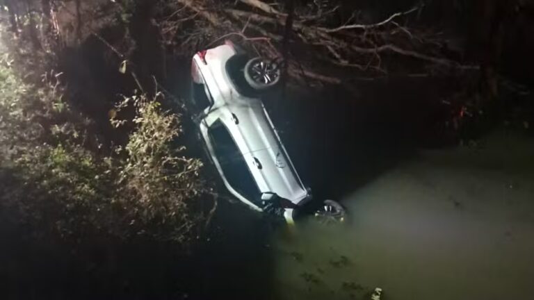 Trânsito – Casal morre voltando de festa de igreja após caminhonete cair de ponte e parar dentro de rio, no Paraná