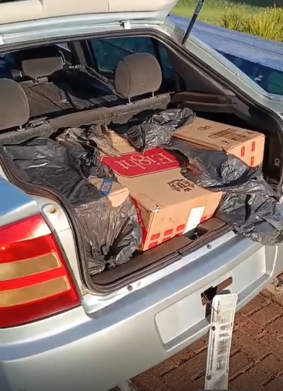 No interior do veículo, foram encontradas aproximadamente 15 (quinze) caixas de cigarros de origem estrangeira, resultando num prejuízo estimado em R$ 57.500,00 (cinquenta e sete mil e quinhentos reais) ao crime organizado da região.