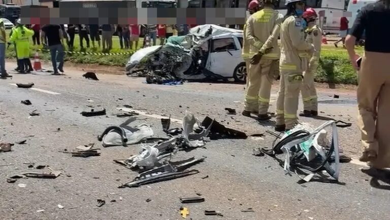 O motorista do carro morreu no local e seu corpo será encaminhado à Polícia Científica para identificação. Os passageiros do carro, um homem e um jovem, ficaram feridos e recebem atendimento no local.