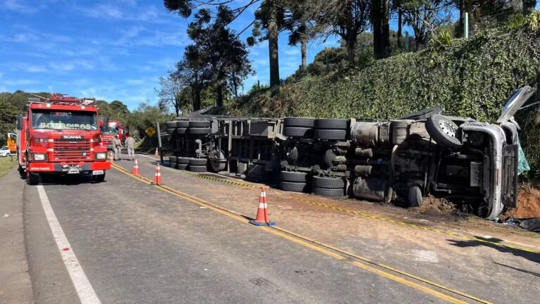 Eles viajavam em um caminhão, que transportava peças industriais e seguia no sentido Flores da Cunha – Vacaria, quando tombou por volta das 9h30, próximo à Curva do Damiani.