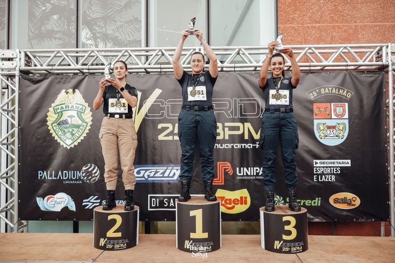 Já na disputa feminina dos 5 km fardado (calça e coturno), duas Guardas Municipais se destacaram: Juliane Tatiane Henschel foi a campeã com 34min03seg, e Tatiane Aparecida Pereira ficou em 3º lugar com o tempo de 35min40seg.